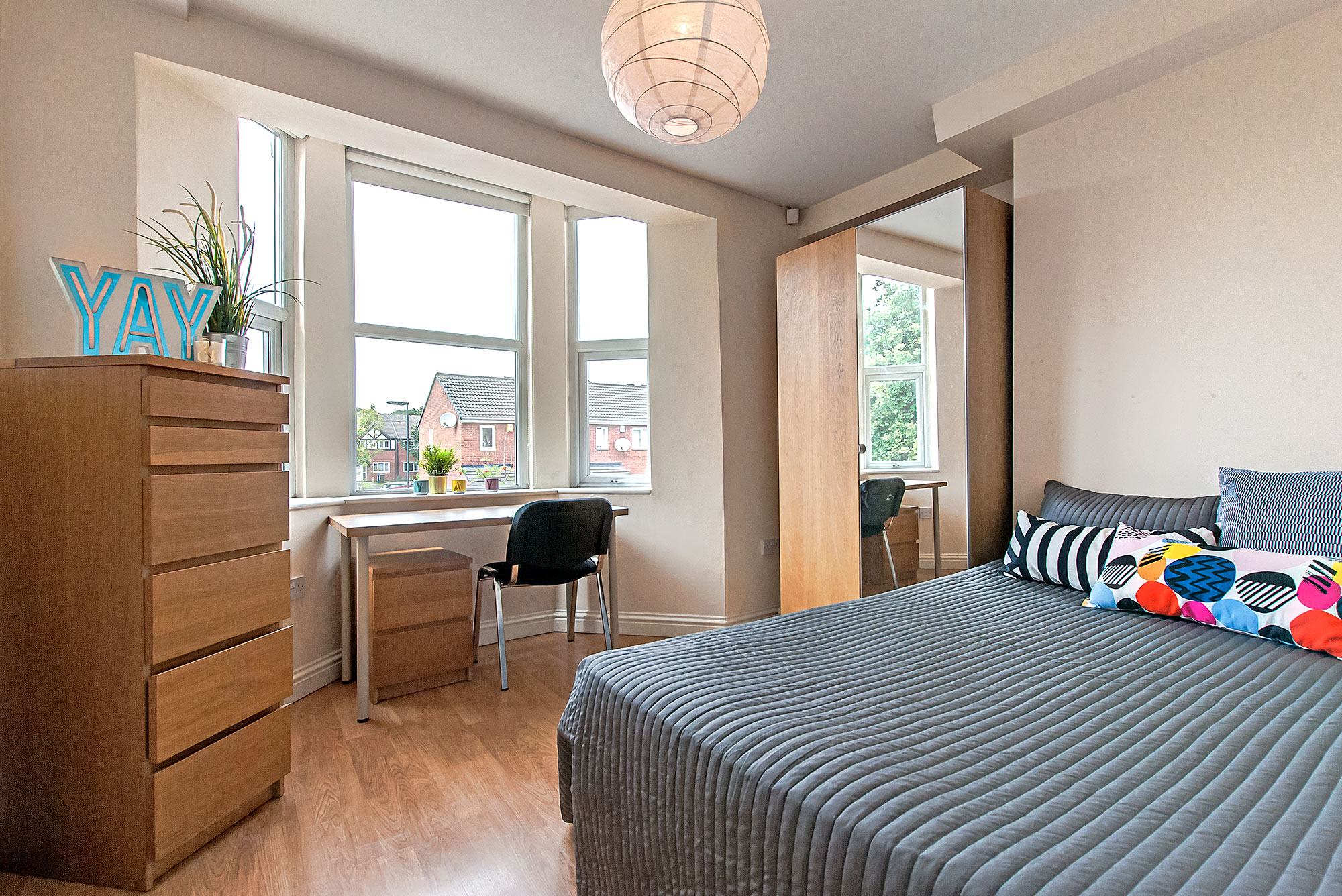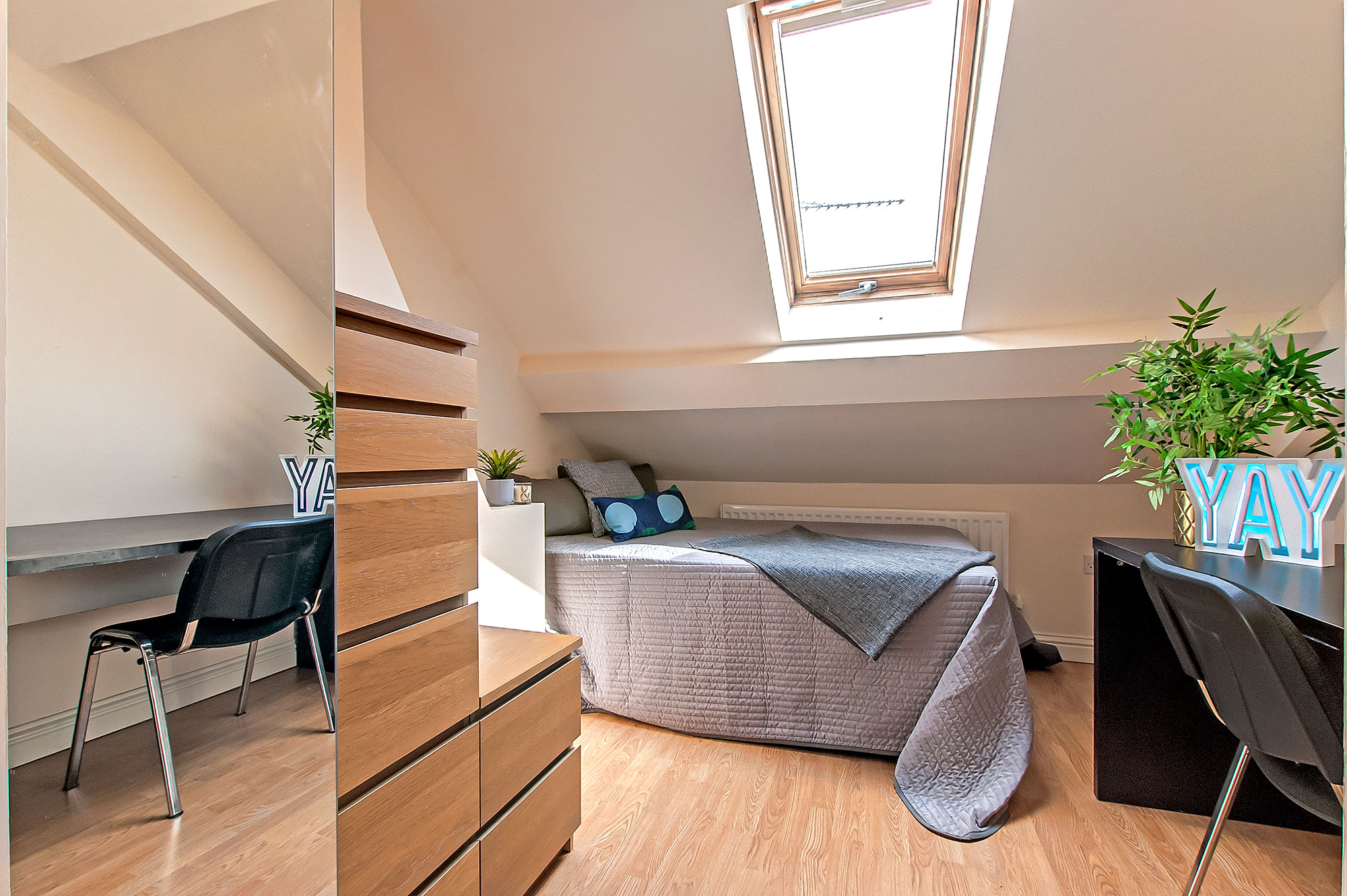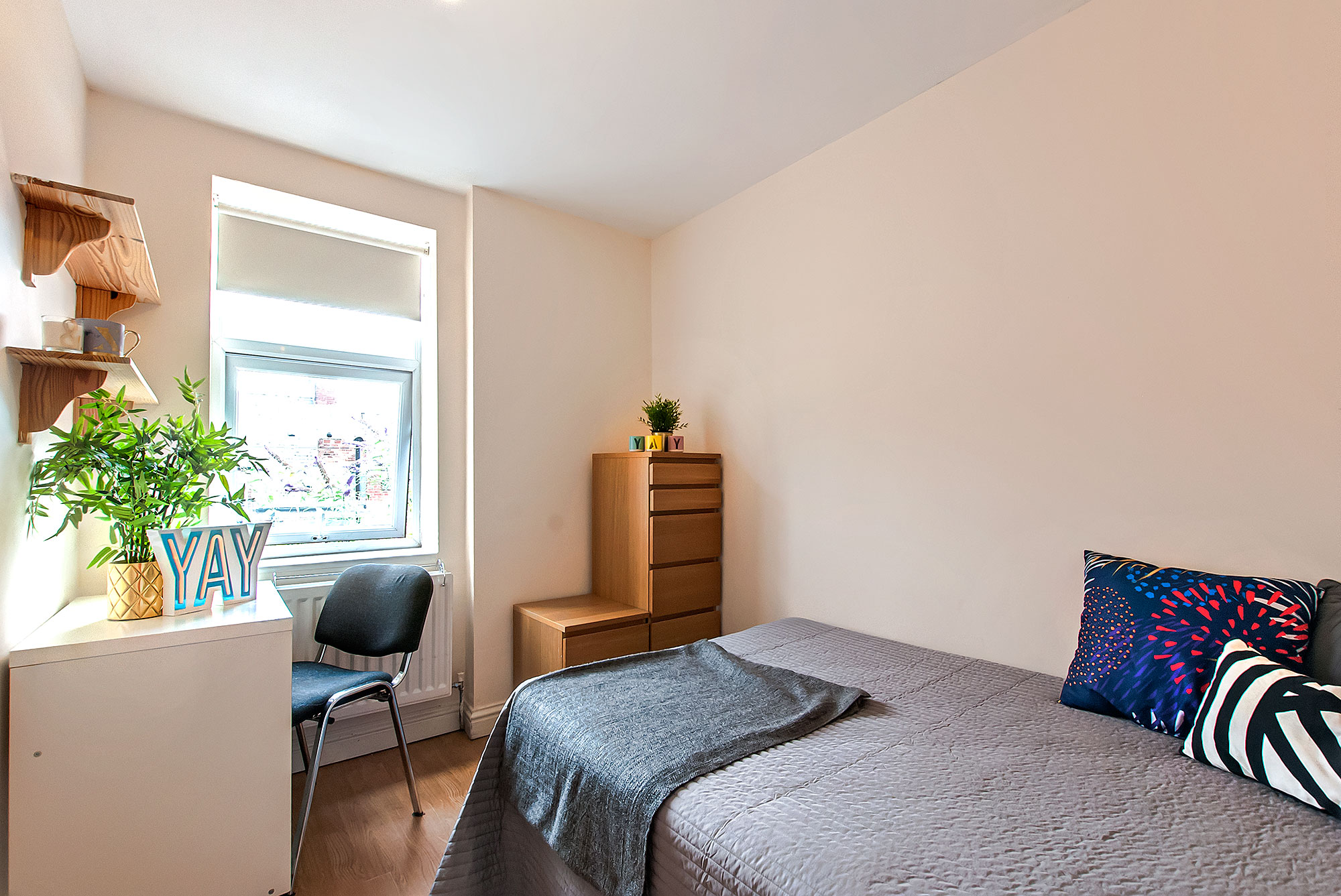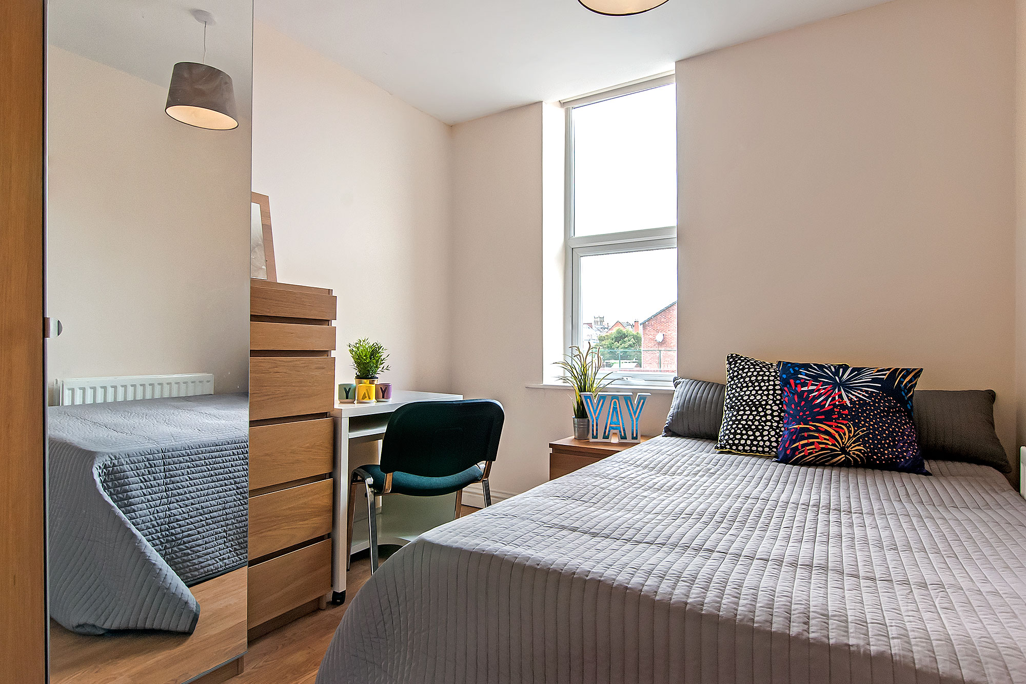 6 bedrooms fully furnished with wardrobe, chest of drawers, desk, chair, 3/4 size bed and bedside table