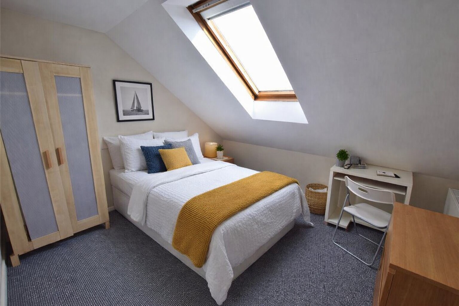 - Six equal sized double bedrooms fully furnished with high quality wardrobes, chest of drawers, desk, chair, bed and bedside table