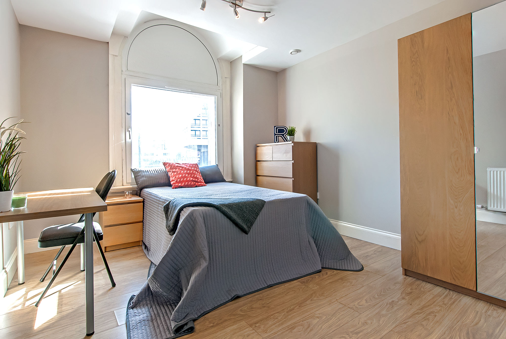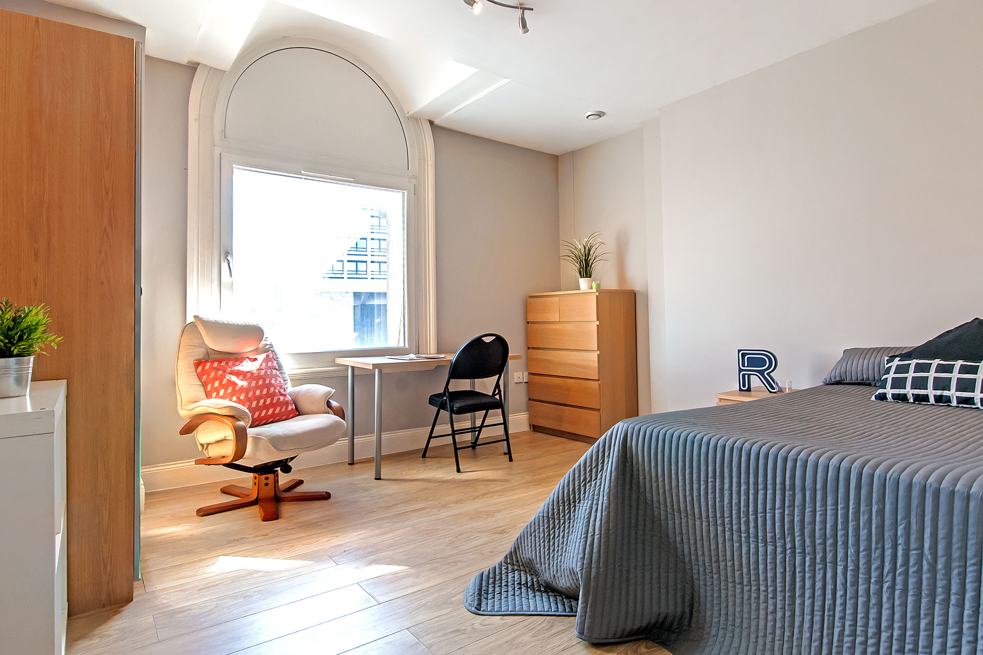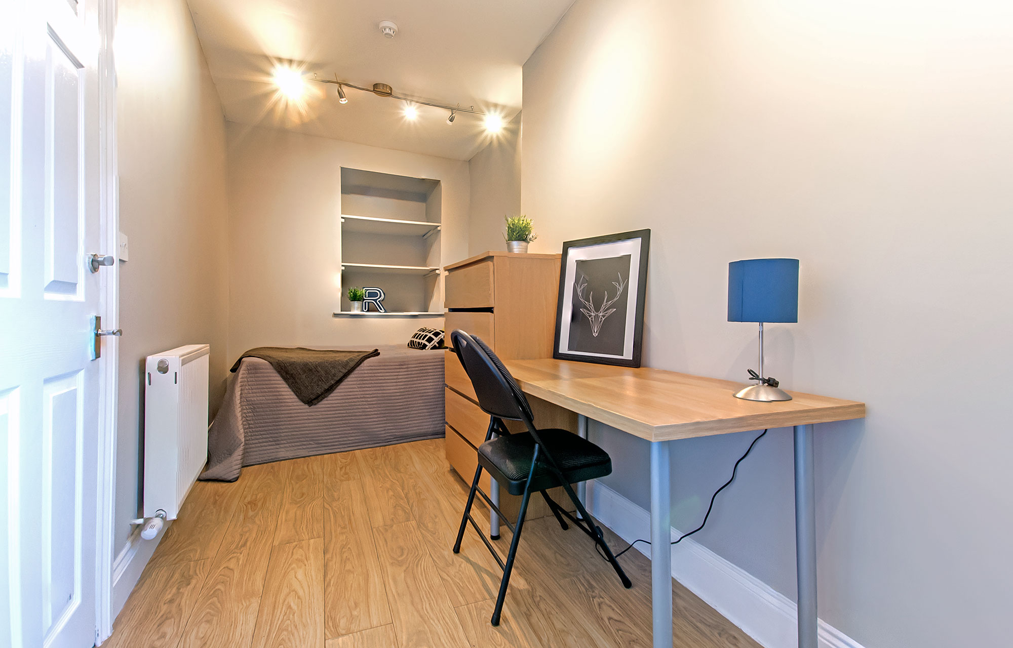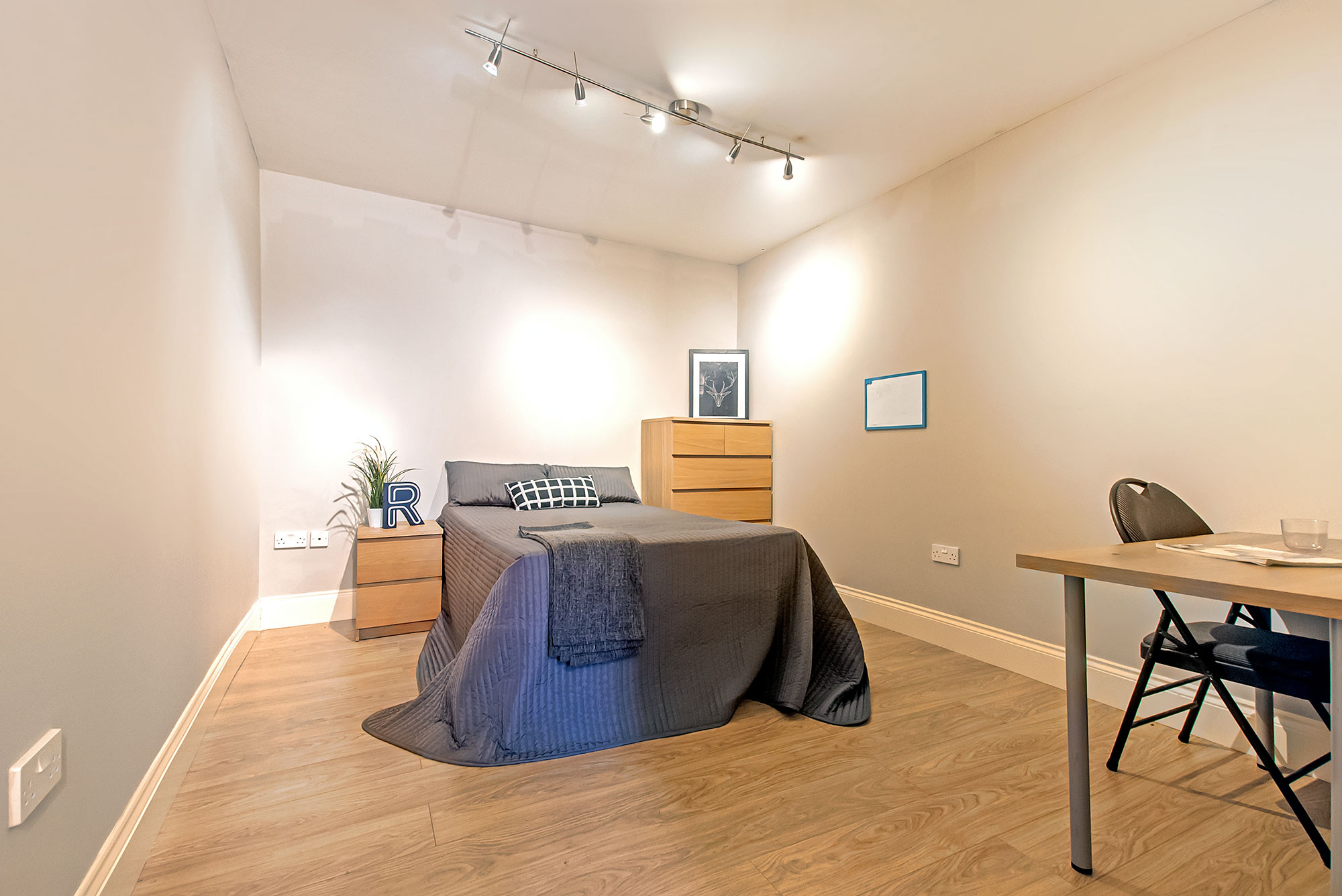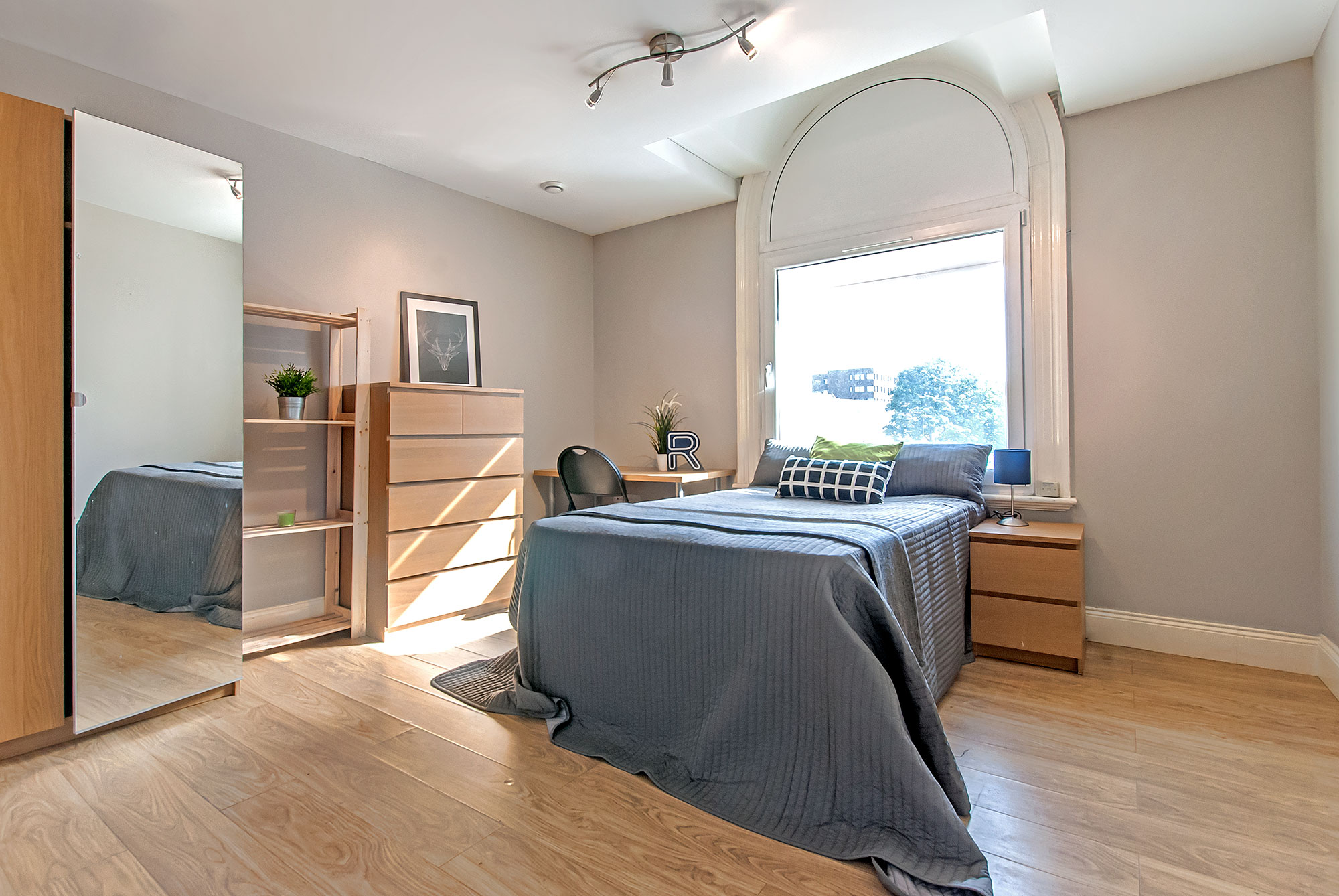 - 5 large double bedrooms furnished with high spec ikea wardrobe, chest of drawers, desk, chair, bed and bedside table